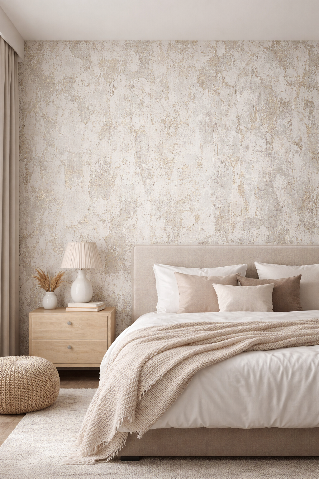 اگر به دنبال یک کاغذ دیواری مدرن و خاص هستید که همزمان حس لوکس، آرامش و گرما را به فضای داخلی منتقل کند، این طرح طوسی-کرم با بافت پتینهای و رگههای ملایم طلایی، یکی از بهترین انتخابها برای شماست.